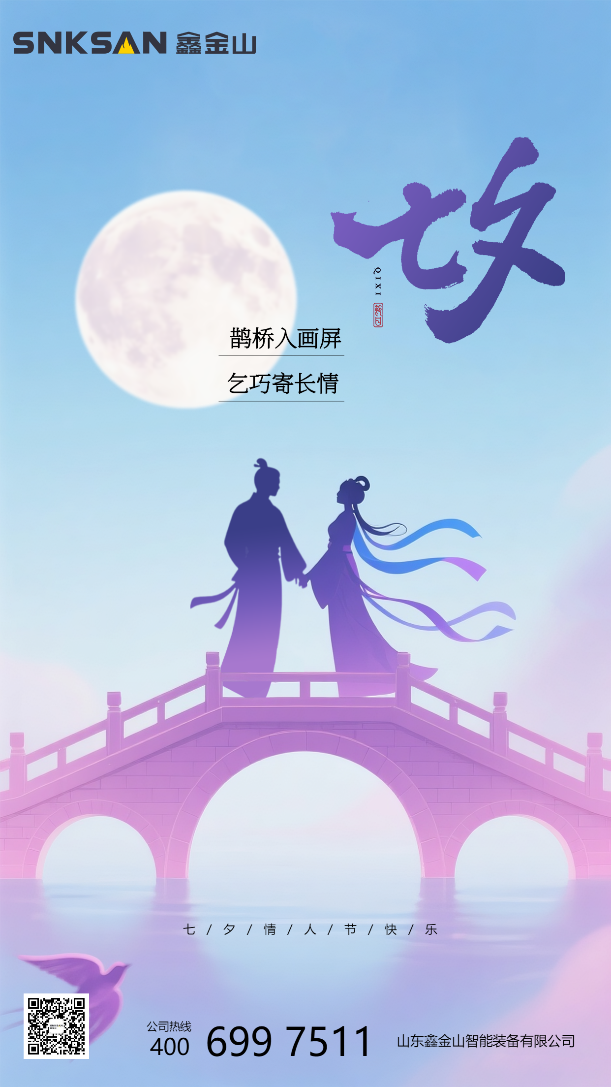 正如牛郎織女不懼銀河迢迢,堅守千年之約,鑫金山亦以堅定的 “智造初心”,跨越地域與時間的界限。從定制化智能裝備研發,到生產線全流程優化,再到后期運維保障,我們始終與客戶并肩同行,以卓越的產品品質與貼心服務,助力客戶實現產業升級,共創 “智造共贏” 的美好未來。這個七夕,鑫金山以 “智造” 為禮,與您共赴一場跨越歲月的 “長青之約”!