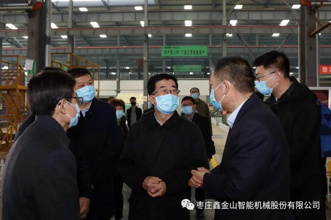 導(dǎo)讀:3月10日上午,棗莊市委書記、市人大常委會主任、市疫情防控工作領(lǐng)導(dǎo)小組組長李峰在省派臺兒莊省人社廳工作組的陪同下蒞臨鑫金山指導(dǎo)疫情防控及復(fù)工復(fù)產(chǎn)工作。棗莊鑫金山智能裝備有限公司董事長孫中巖全程接待,并詳細(xì)匯報了公司各項工作情況。