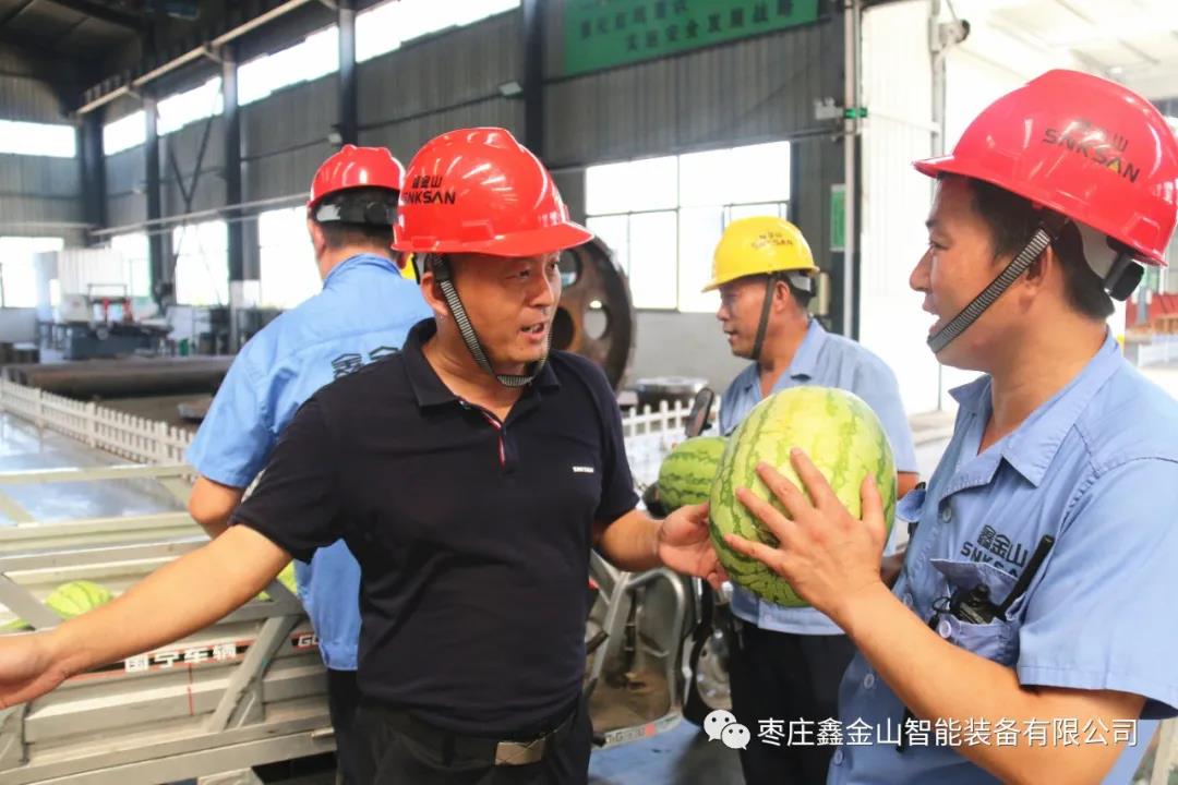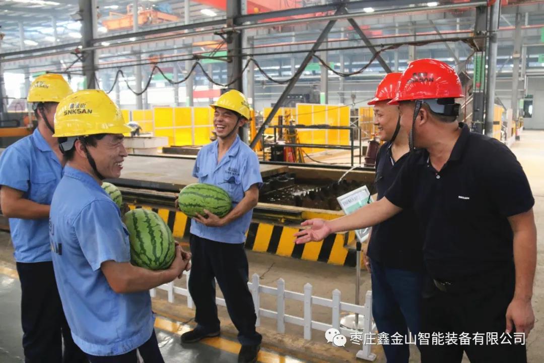 8月17日,鑫金山黨支部和工會(huì)開(kāi)展了“送西瓜、送清涼”慰問(wèn)活動(dòng),鑫金山黨支部書(shū)記、工會(huì)副主席劉洪選,生產(chǎn)總監(jiān)侯國(guó)立,黨支部組織委員、安全設(shè)備科科長(zhǎng)孫華國(guó)親自上陣,將精心準(zhǔn)備的西瓜及時(shí)配送到車間每一位員工的手中,將公司的關(guān)心、關(guān)愛(ài)傳遞到員工的心中,使員工在高溫酷暑季節(jié)里感受到公司的絲絲“清涼”。