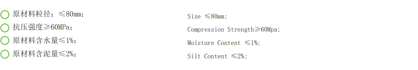 •               When the sulfate solution method is adopted to conduct a test, quality loss of sands ≤8.0%; the max. single stage crushing index ≤25%;